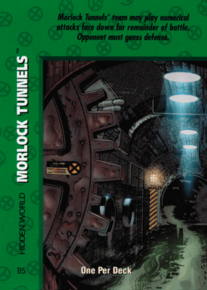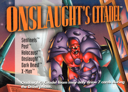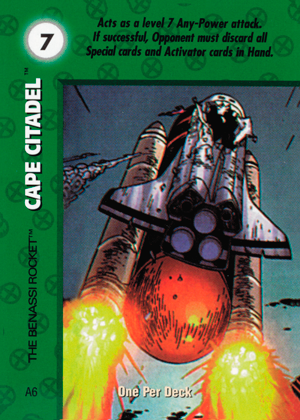 Location cards also serve as battlesites. When using a battlesite, your deck will include character cards listed on the location card. These are called activator cards, and the battlesite itself will store specials those characters can play. During play, a character card played as an activator is exchanged for one of that character’s specials in the battlesite, which is then used like an ‘any hero’ special.